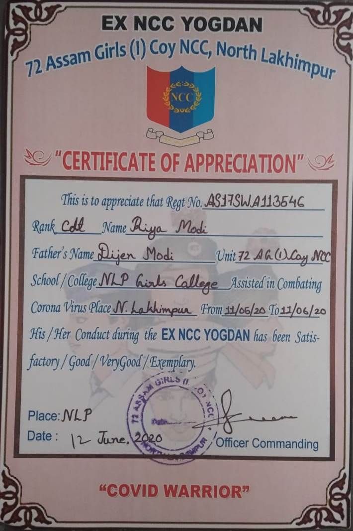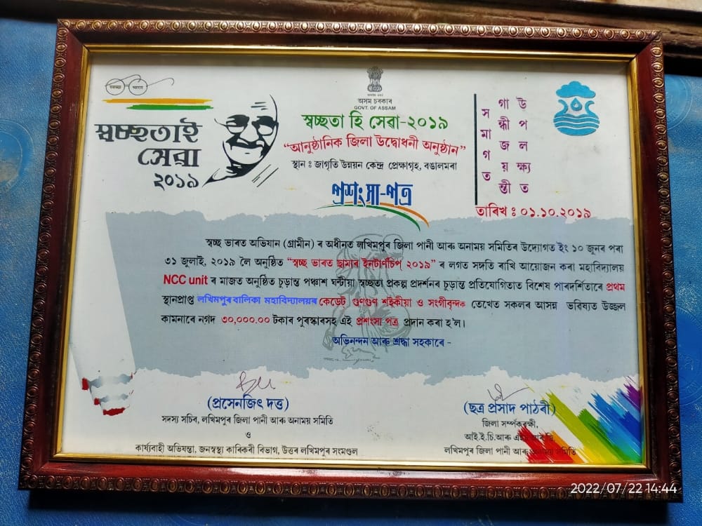 72 Assam Girls (I) Coy, NCC, North Lakhimpur |